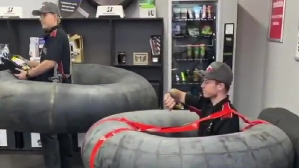 Ook in Australië is het coronavirus uitgebroken en in een garage is afstand houden soms best lastig. Gelukkig hebben de werknemers van STS Bridgestone Bullsbrook in Bullsbrook (Australië) daar iets op gevonden.