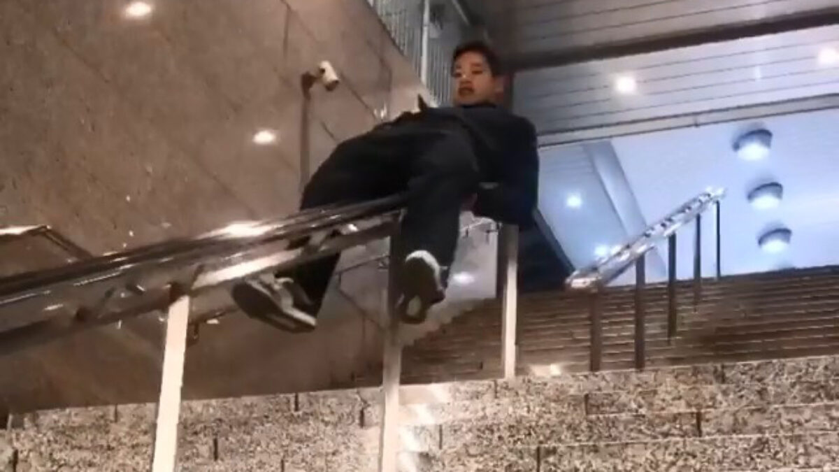 Trapglijder gaat voor een pijnlijke notenkraker Fails