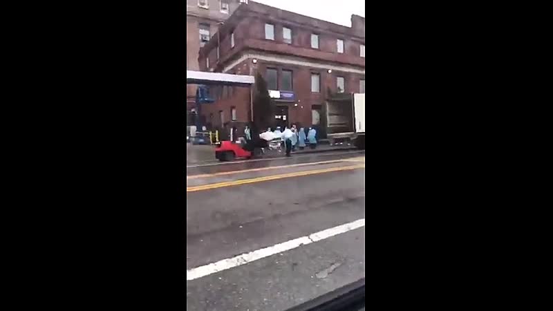 Bizarre video laat zien hoe lijken bij een ziekenhuis in een vrachtwagen worden geladen