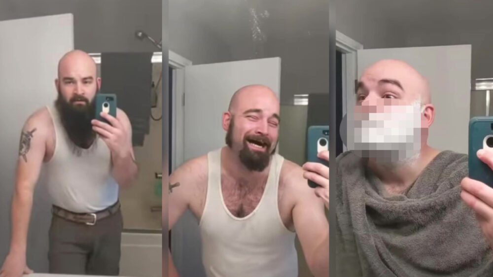 Allemaal leuk en aardig, zo'n lange baard, maar als je op je werk vanwege het coronavirus ineens een masker op moet dan heb je een klein probleem. Weghalen dus, maar da's nog best een dingetje als je je eigen onderkin al jaren niet meer hebt gezien.