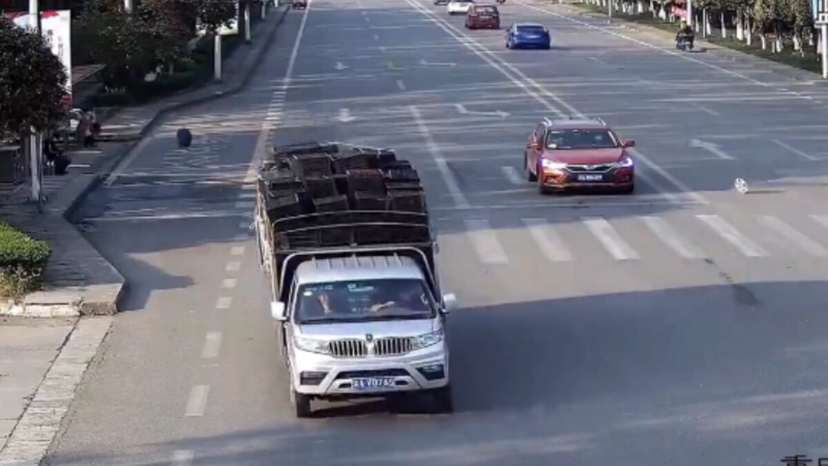 Als voetganger ben je op een hoop dingen bedacht, maar een minibus waarvan het wiel loslaat en keihard tegen jou aanknalt zie je toch echt niet aankomen. Deze pechvogel maakte het in China mee.