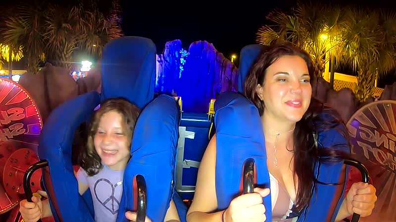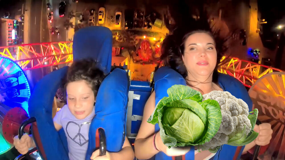 Moeders maakt een ritje in de slingshot met haar 'drie' kinderen