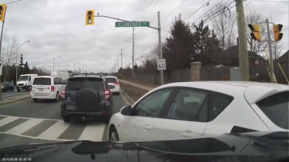 Had de bestuurder met de dashcam meer ruimte moeten laten of zit de bestuurder in de witte auto fout?