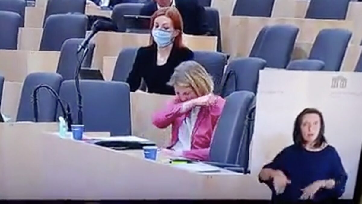 Keurig in het elleboogje geniest en dan komen die mondkapjes toch nog van pas 🤦