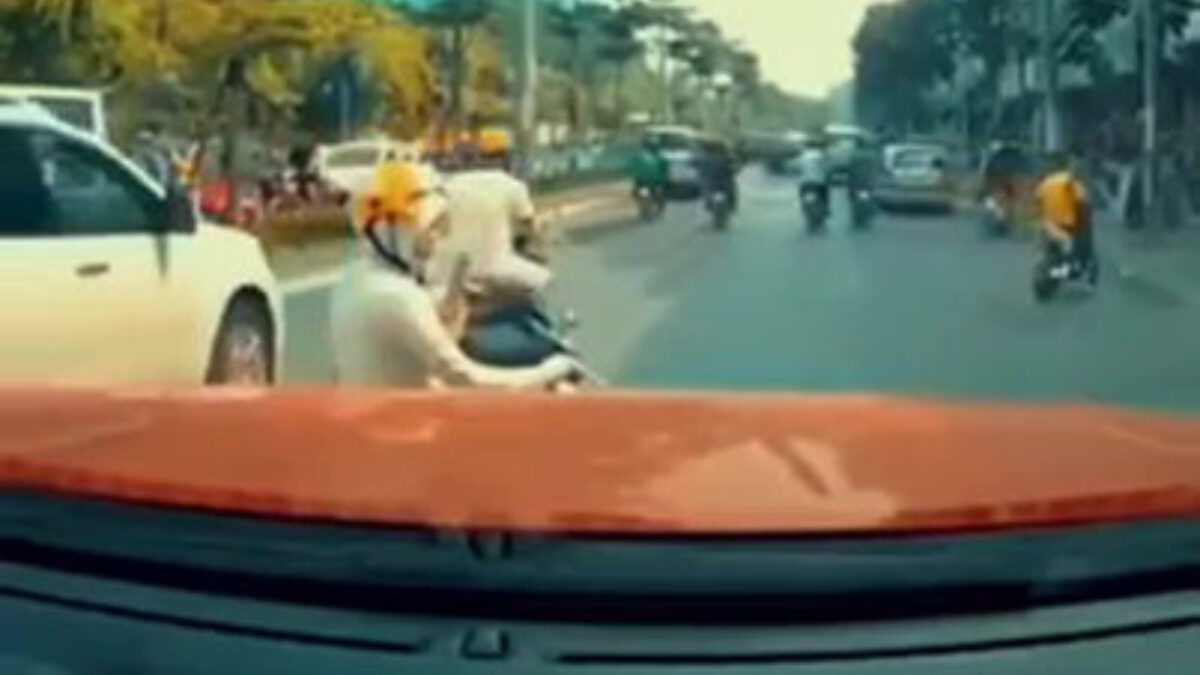 Chinese dame vindt haar telefoon belangrijker dan het verkeer Bizar