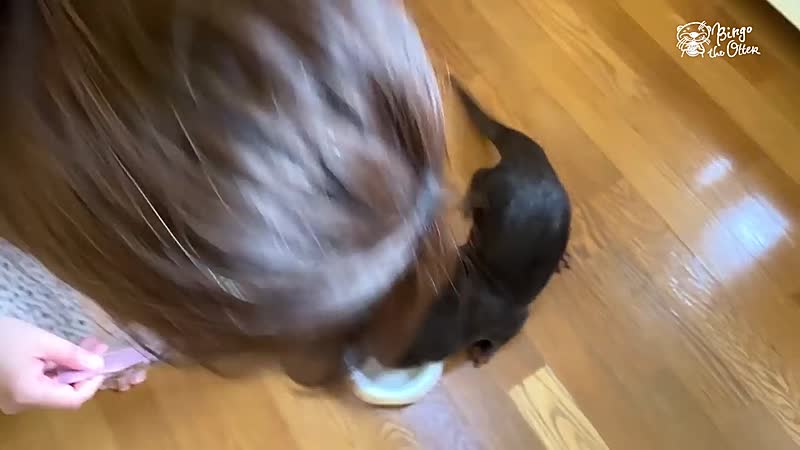 Otter Bingo is extreem blij als hij zijn favoriete kattenvoer krijgt voorgeschoteld