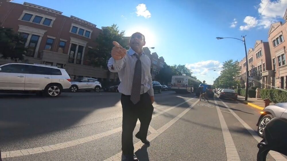 Wielrenner wordt klemgereden door pissige kantoorpik in een BMW