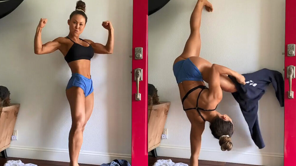 Fitgirl Michie Peachie heeft een omslachtige manier uitgevonden om zichzelf aan te kleden