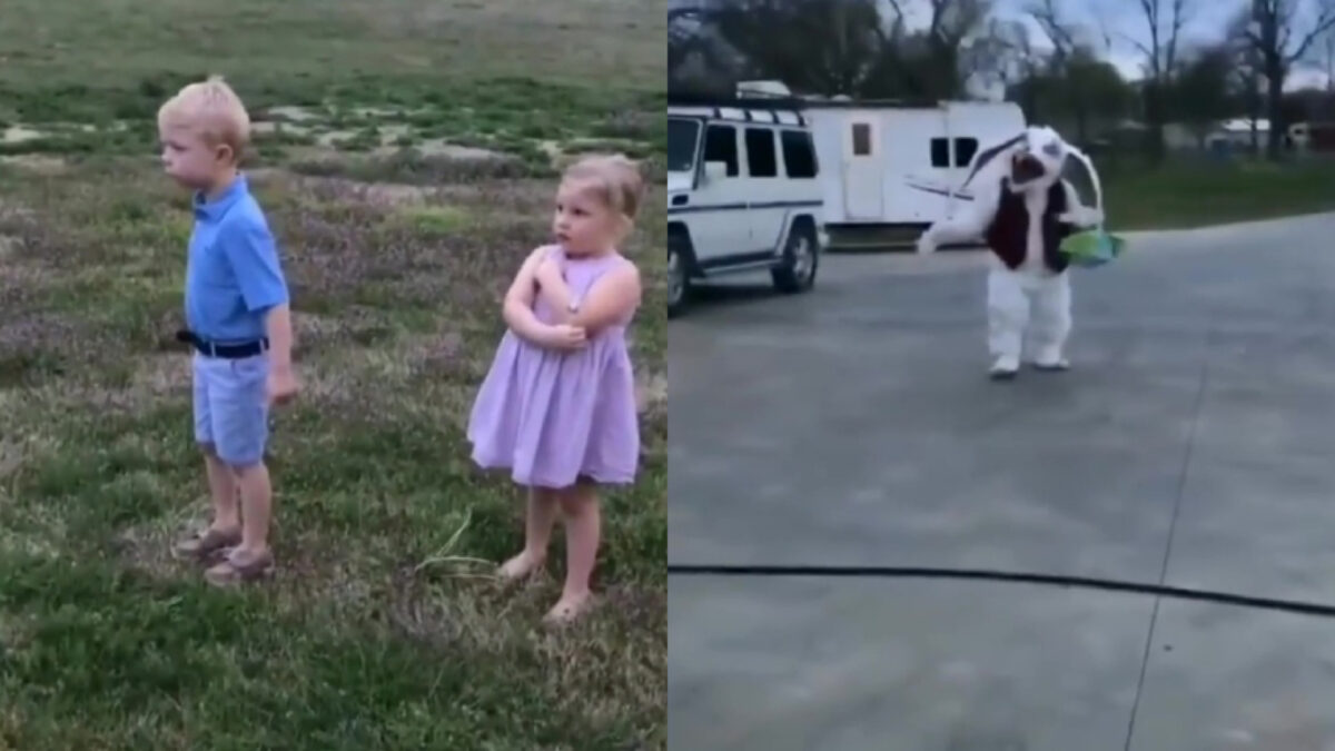 Een ontmoeting met de paashaas zou voor kinderen een leuke ervaring moeten zijn. Voor deze twee koters liep dat echter iets anders af. Trauma in 3... 2... 1...
