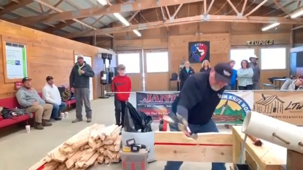 Hobbykok klaart parcours om te laten zien hoe gigantisch scherp zijn hakmes is