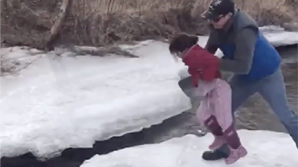 Vader en kind gaan een gezellig stukje ijsdansen Fails