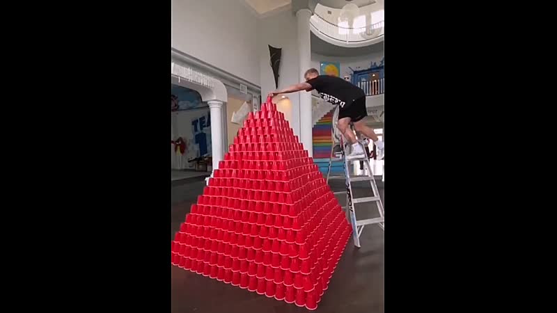 Het record voor grootste bekertjes-toren gaat niet naar deze pechvogel Fails
