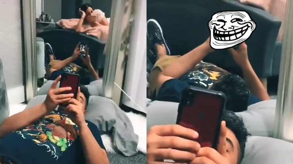 Zit je vanwege quarantaine al de hele dag op elkaars lip, word je gesnitched door een spiegel. Even snel vergroten om goed te checken hoe THICC ze wel niet is.