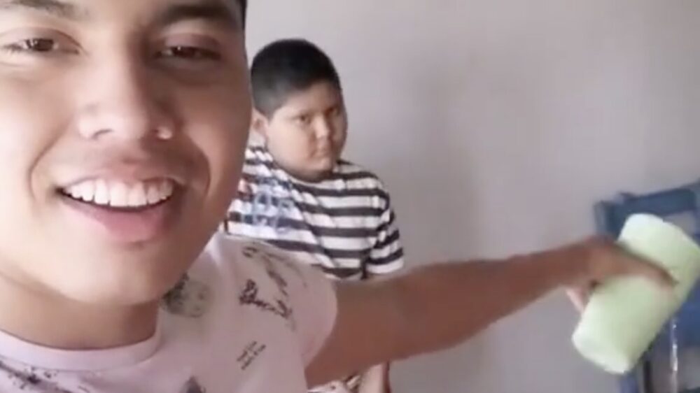Klein broertje neemt wraak met zijn extra-natte dweil