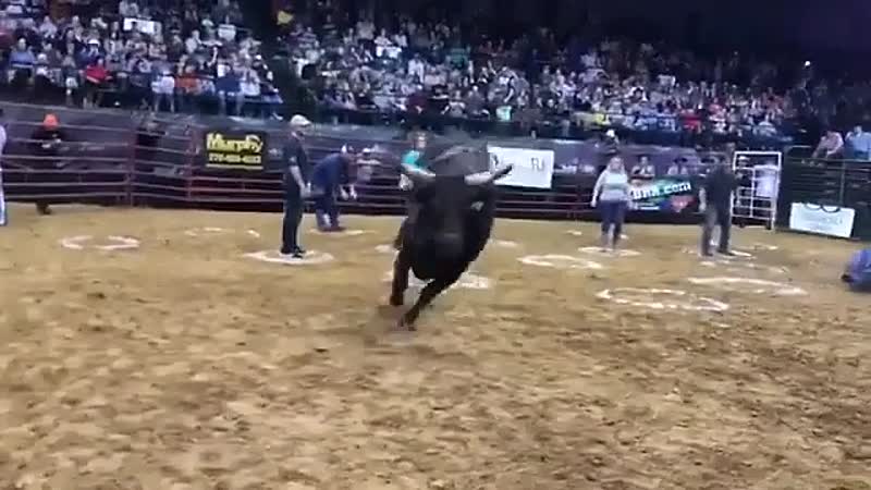 Het lijkt erop dat de deelnemers in hun cirkeltje moeten blijven staan, en last man standing wint. Gokken we. Hoe dan ook, de stier was het hier minder mee eens en trok geheel zijn eigen plan. Karma, biatches!