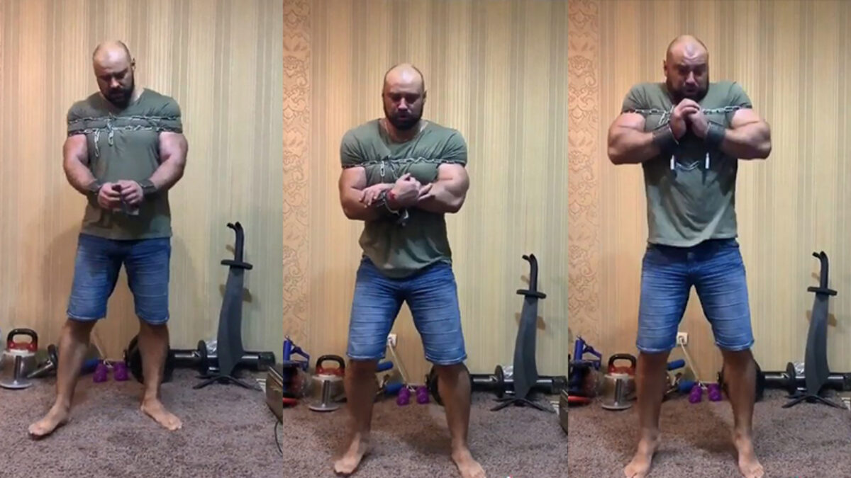 Ontzettende krachtpatser breekt kettingen zonder zijn handen te gebruiken!