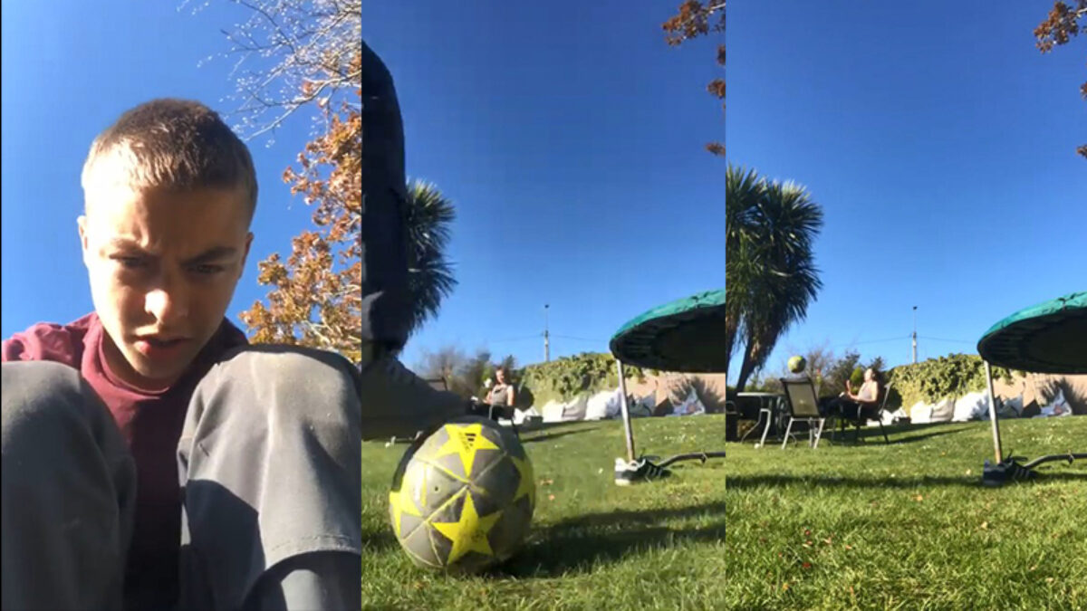 Helaas zijn alle voetbaltrainingen al een tijdje afgelast, maar gelukkig heeft hij een achtertuin waar hij zijn nieuwe kunstjes kan uitproberen.