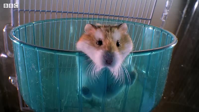 Russische hamsters die het in een loopwiel tegen elkaar opnemen zorgen voor hilarische beelden