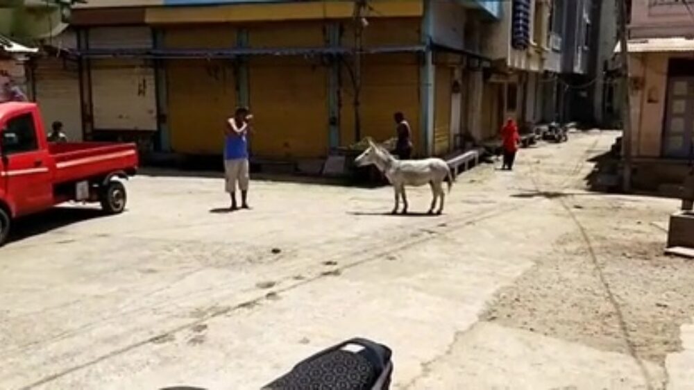 De paardenfluisteraar ken je ongetwijfeld, maar wist je dat er ook een ezelfluisteraar bestaat? Dit is 'm, en we betrappen hem hier op een goed gesprek met een toevallige voorbijganger.