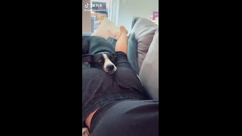Hond heeft een comfortabel plekje gevonden om heerlijk te relaxen