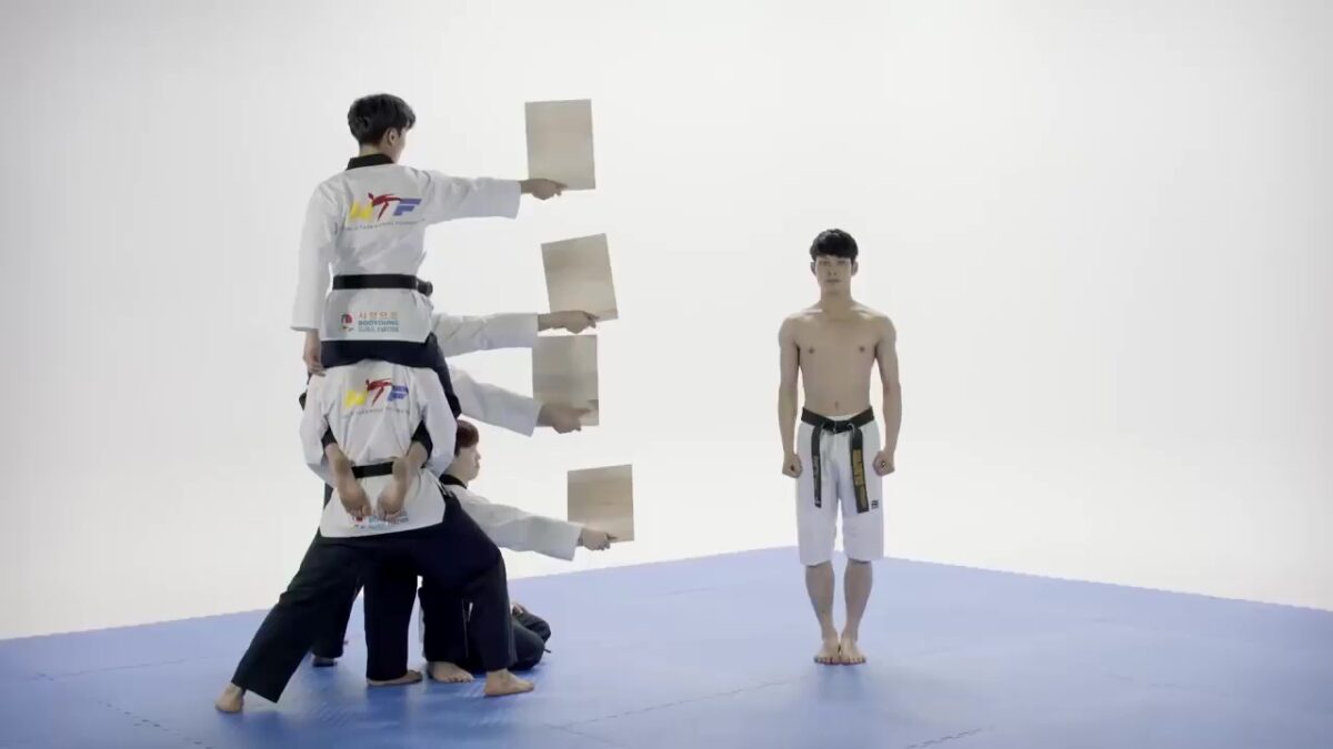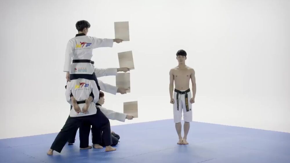 Karatebaas ragt even 4 plankjes in één spinning kick doormidden