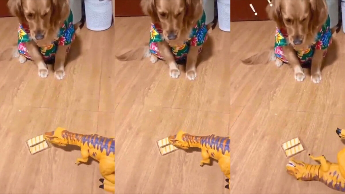 Hond heeft ineens niet meer zo veel zin in een traktatie
