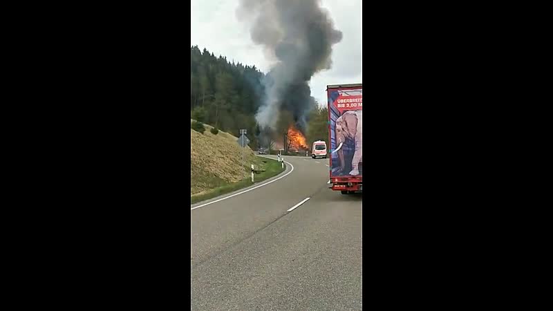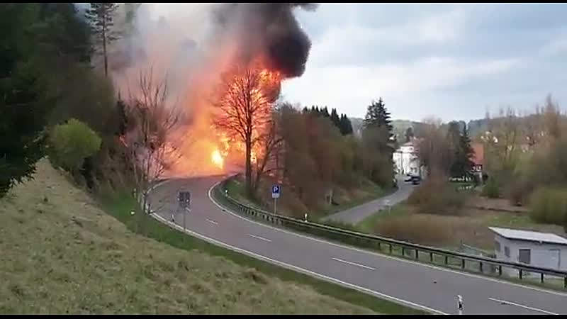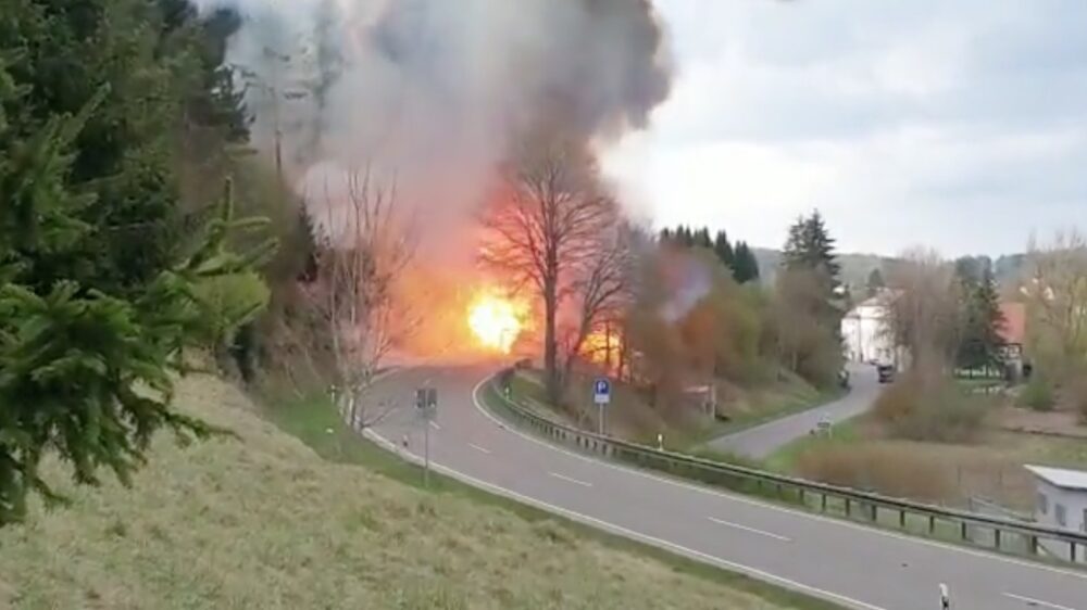 Vrachtwagen met gasflessen doet boem in Trochtelfingen, Duitsland