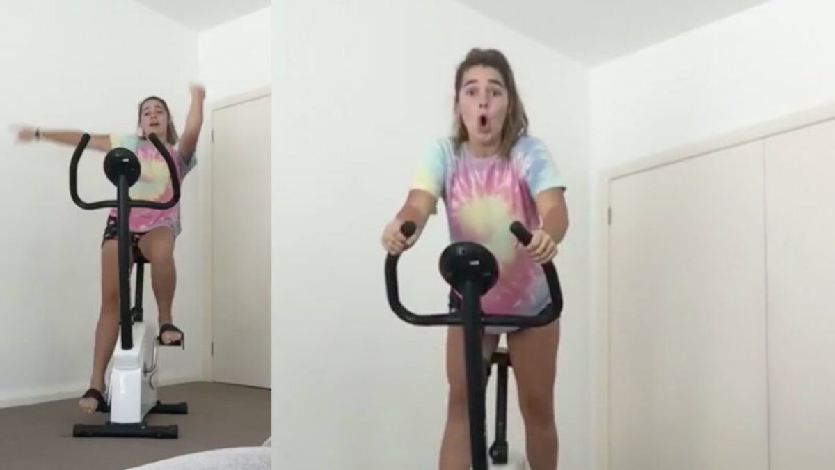 Kijk mij, ik ben superrrrgoed bezig op de hometrainerrrr en ik kan zelfs een beetje stunten 🤦🏼‍♀️