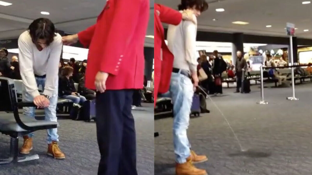 Bezopen passagier straalt rustig van zich af in de vertrekhal van het vliegveld Fun