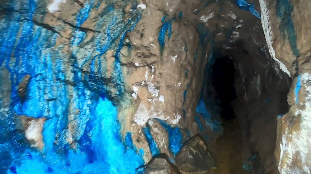 De mijn bestaat uit kleurrijke formaties doordat water al die jaren de mineralen uit omringende rots drijft. Das potverdomme mooi.