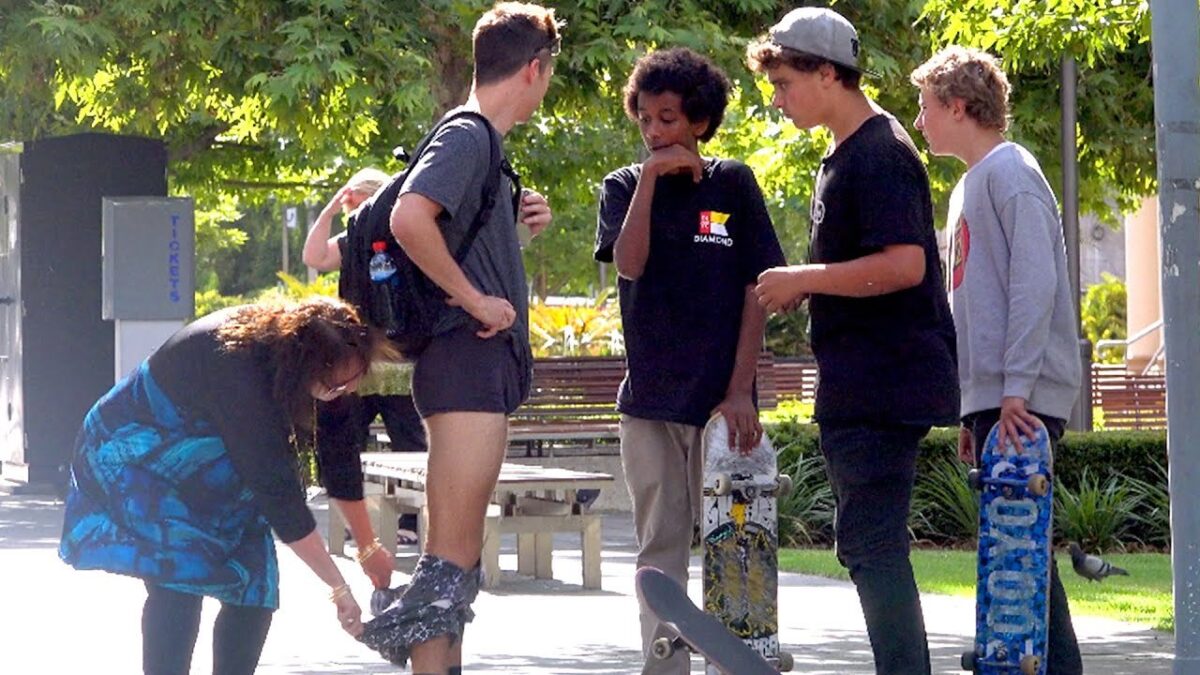 Oma die iemands broek omlaag trekt zorgt voor een hoop verbaasde blikken
