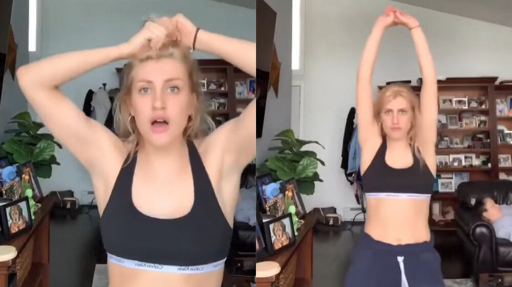 Blondine zorgt voor achtergrondorkest tijdens het coveren van Shakira