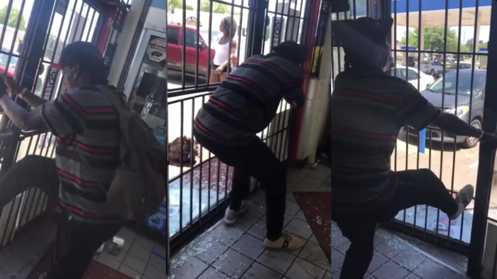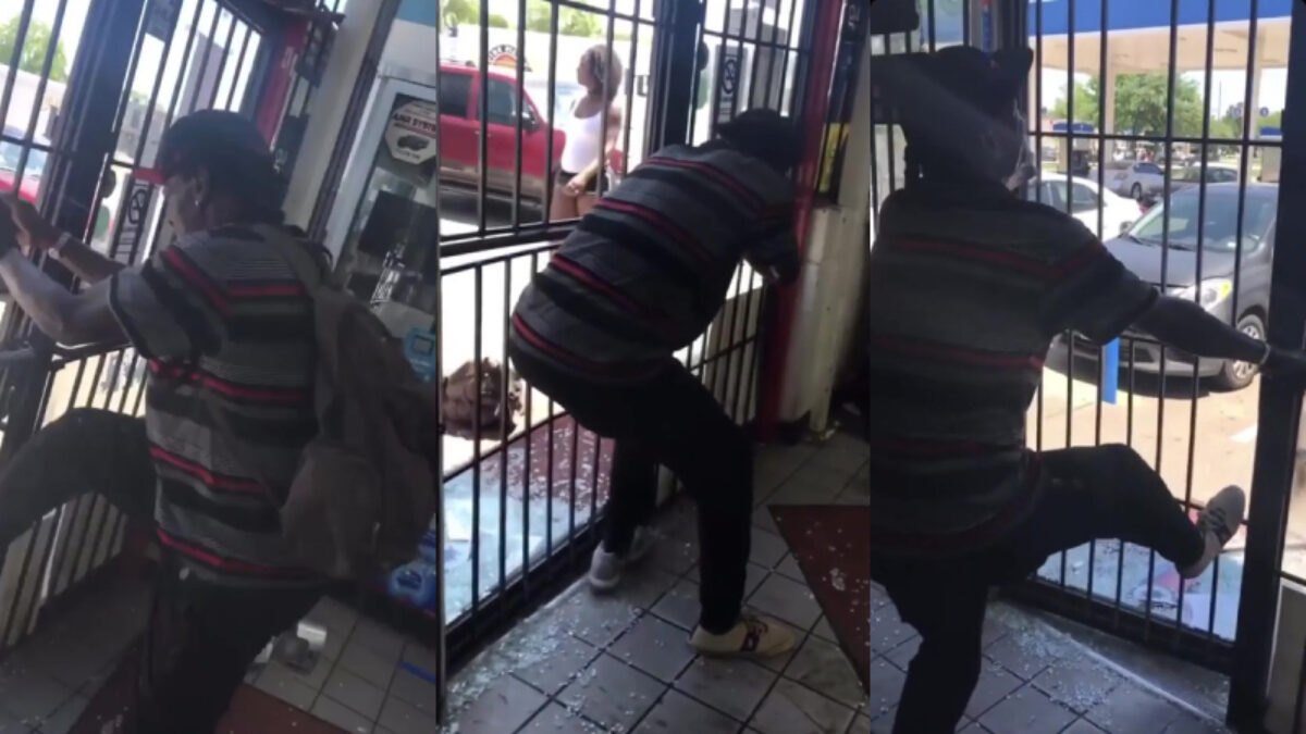 Deze winkeleigenaar betrapte een dief en deed heel simpel gewoon even de deur op slot zodat de politie rustig die kant op kon komen. Daar was het boefje het uiteraard niet mee eens en deze ging dan ook direct in de sloopmodus. Toegegeven, wél functioneel.