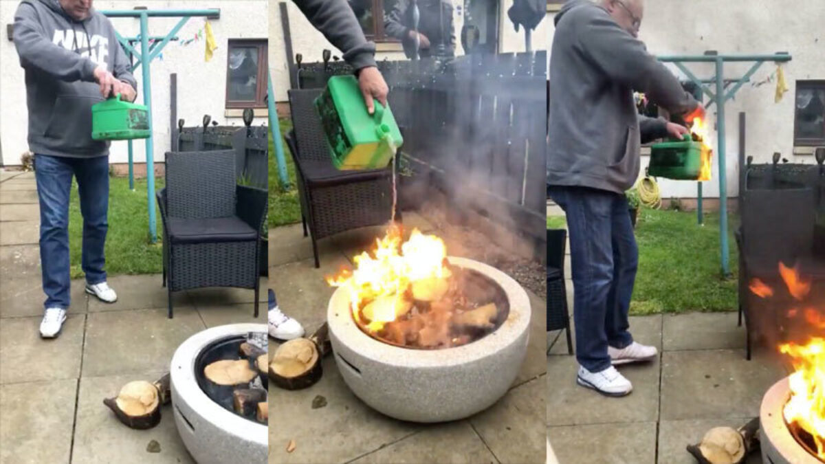 Tenzij je liefhebber van zwartgeblakerde stukken vlees bent, is bbq'en over het algemeen een kwestie van geduld hebben voordat je je stukje vlees naar binnen kunt werken. Deze opa heeft dat blijkbaar niet en gooit een beetje 'olie' op het vuur.