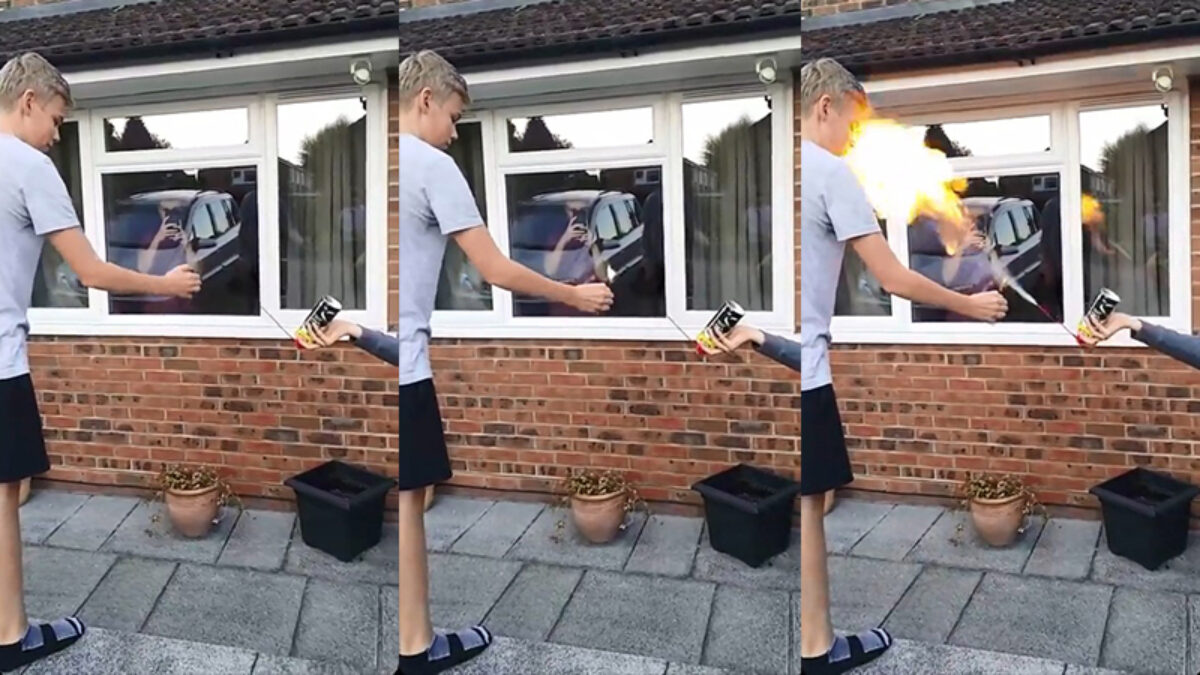 Spuit elf én twaalf ontdekken het trucje met een spuitbus en vuur Fails