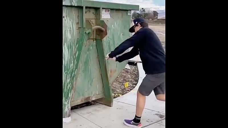 Een container kapotslaan met je honkbalknuppel Fails