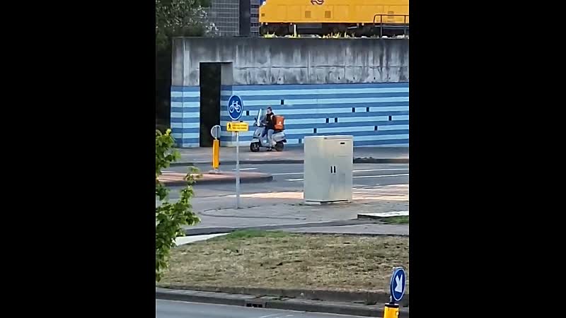 Thuisbezorgster zet scooter keurig aan de kant om 2 minuten te herdenken