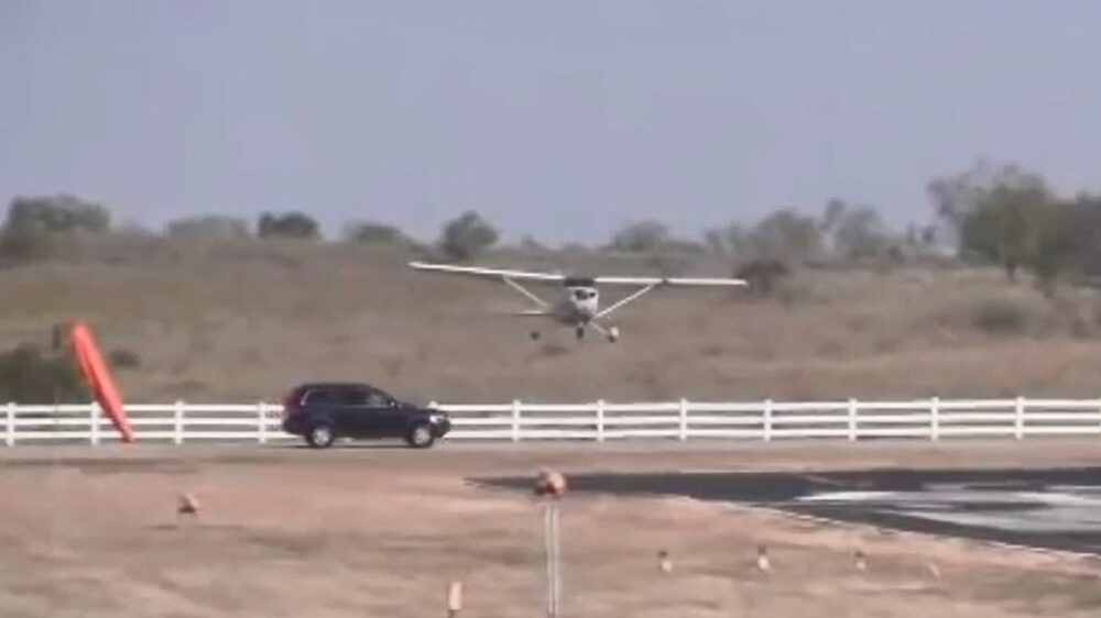 Vliegtuig kust onoplettende automobilist als hij probeert te landen