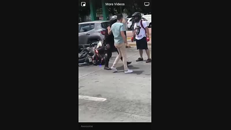 Helaas voor hem koos hij wel het verkeerde slachtoffer uit. Wellicht de volgende keer wachten tot de tegenstander zijn helm af doet?