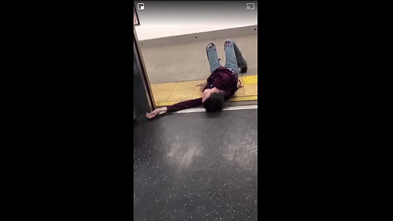 We hebben geen idee wat de reden is dat deze mevrouw in de deuropening gaat liggen, maar dat maakt de frustratie van andere reizigers er niet minder op. Oh, dus dankzij jou kan ik niet naar huis? Hier, opzouten gek!