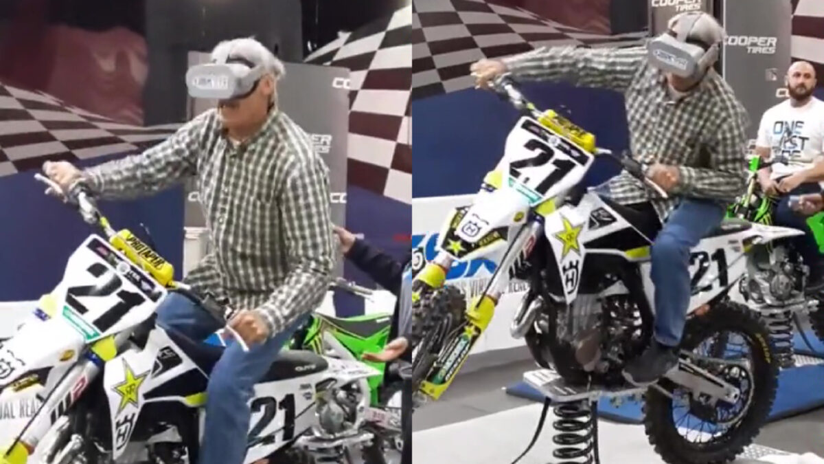 Ook al ben je wellicht wat te oud om daadwerkelijk met een crossmotor over een circuit te jagen, met virtual reality kom je toch nog aardig dichtbij. Opa heeft hier dan ook de dag van zijn leven!
