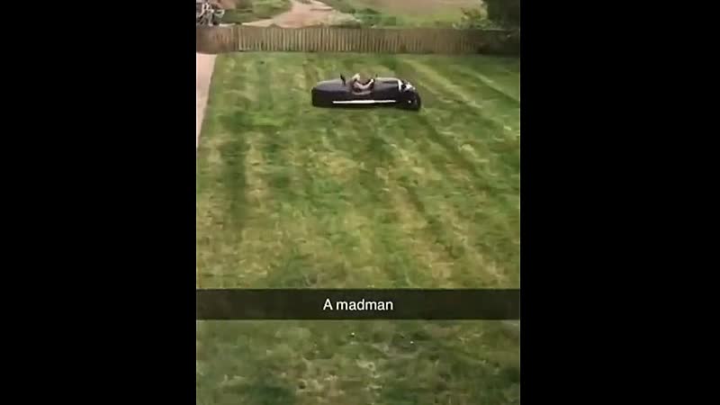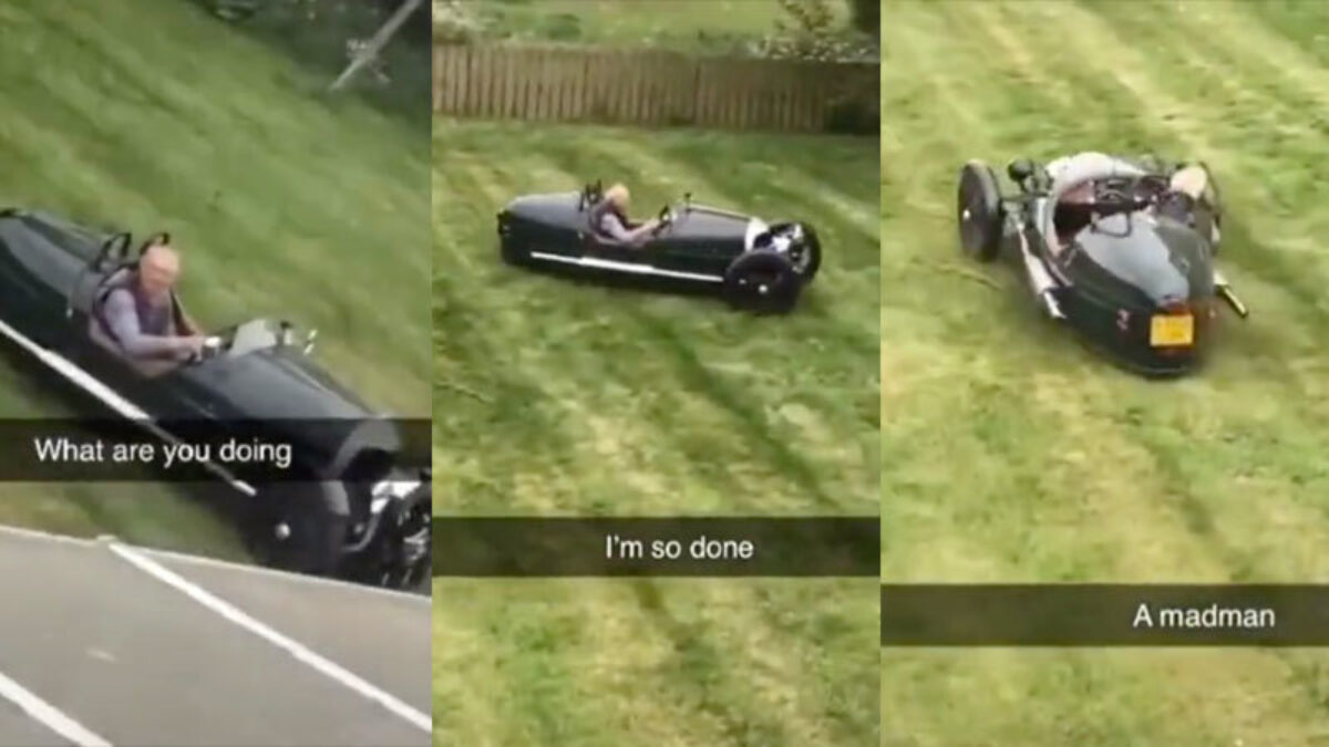 Geen enkel virus weerhoudt opa ervan om een stukje te driften in zijn achtertuin!