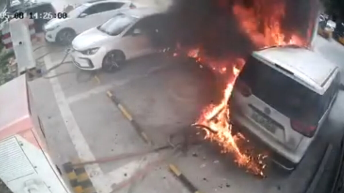 Elektrische auto's moeten logischerwijs opgeladen worden, maar zoals met elk apparaat gaat dat nog wel eens mis. Zo blijft er van dit busje bijzonder weinig over nadat de vlam in de pan slaat.