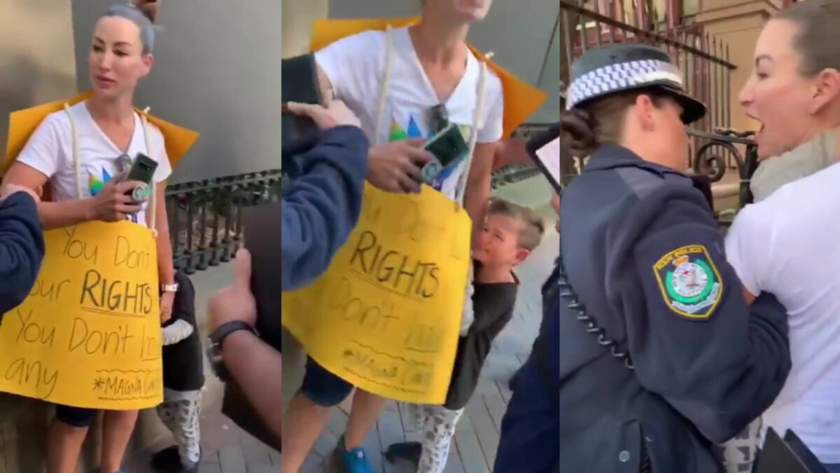 Je mag je huis niet uit vanwege de corona, dus ga je je huis uit om daartegen te protesteren. Wat gebeurt er dan? Precies, dan word je gearresteerd. Deze moeder van het jaar vond het zelfs nodig haar koter mee te nemen.