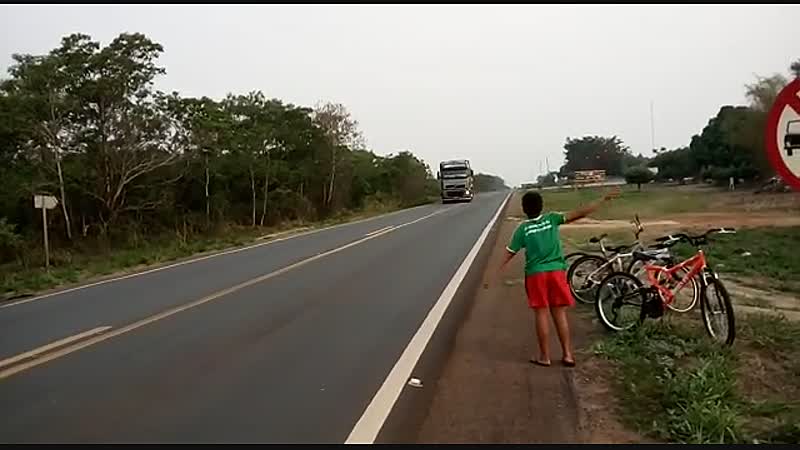 Vrachtwagenchauffeur geeft iets te heftig showtje voor koter weg Fails
