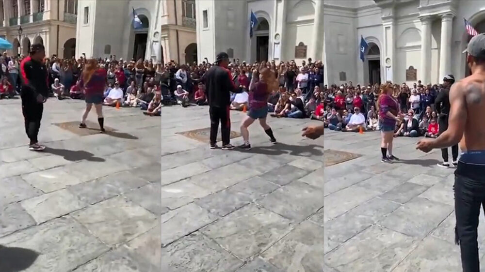 Middelvinger Karen wordt uitgejouwd als ze een optreden probeert te verpesten