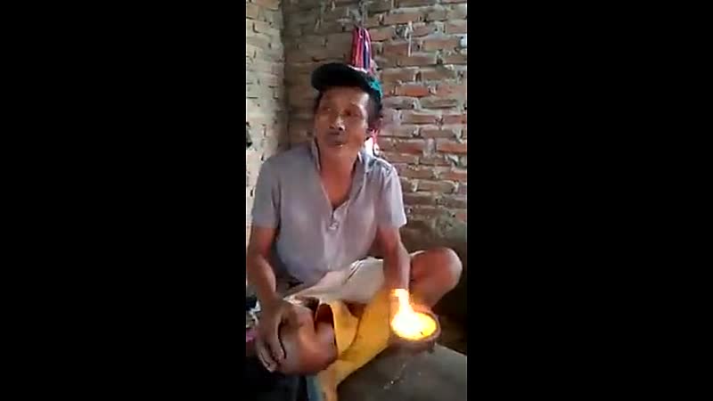 Indonesiër gebruikt geen desinfecterende handgel maar eet vuur Random