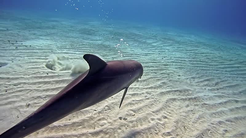 Een aantal duikers werd in San Salvador, een eiland en een district van de Bahama's, aardig verrast toen een speelse dolfijn aan kwam flipperen en het groepje wat trucjes liet zien.