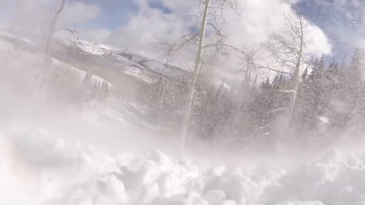 Benauwende POV van een skiër die door een lawine wordt overvallen Bizar