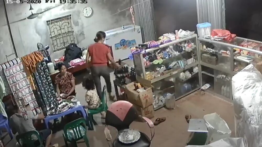 Nu had dit Vietnamees gezin wel geluid, dus konden ze gelukkig op tijd reageren toen de plafondventilator een aanslag op ze pleegde...